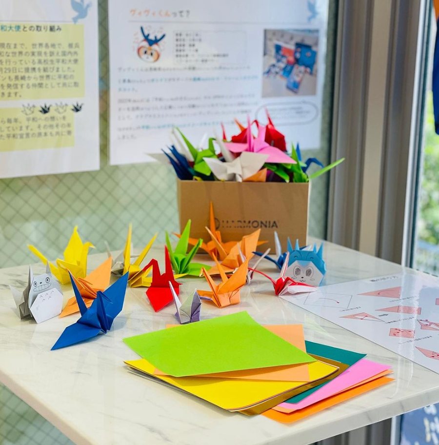 Report期間中、HARMONIA店舗内に折り鶴を折っていただく特設ブースを設置しています。