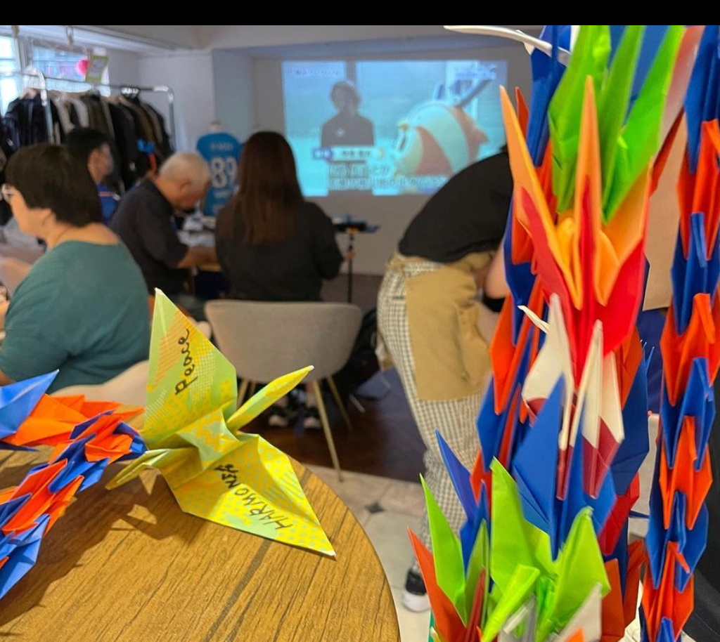 期間中、HARMONIA店舗内に折り鶴を折っていただく特設ブースを設置しています。