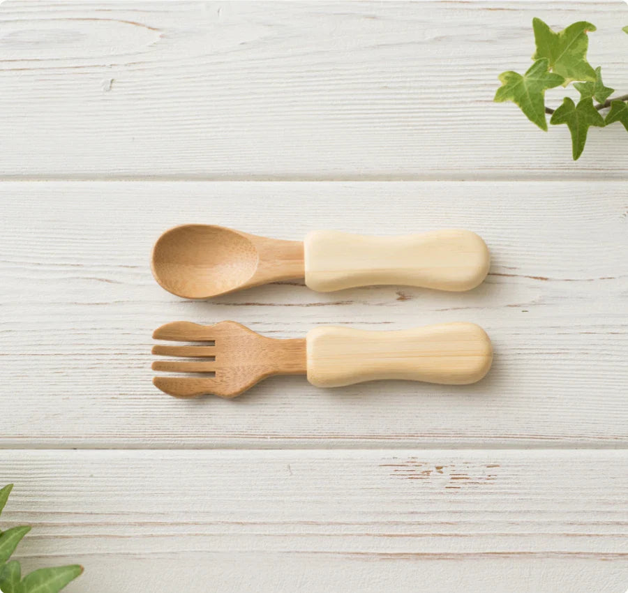ファーストスプーン・フォークとして、出産祝いやちょっとしたプレゼントにオススメ。天然竹の滑らかな口触りは、離乳食~日常使いまで大活躍!