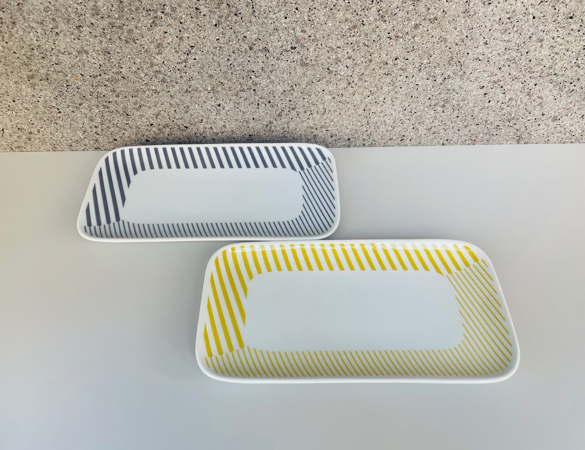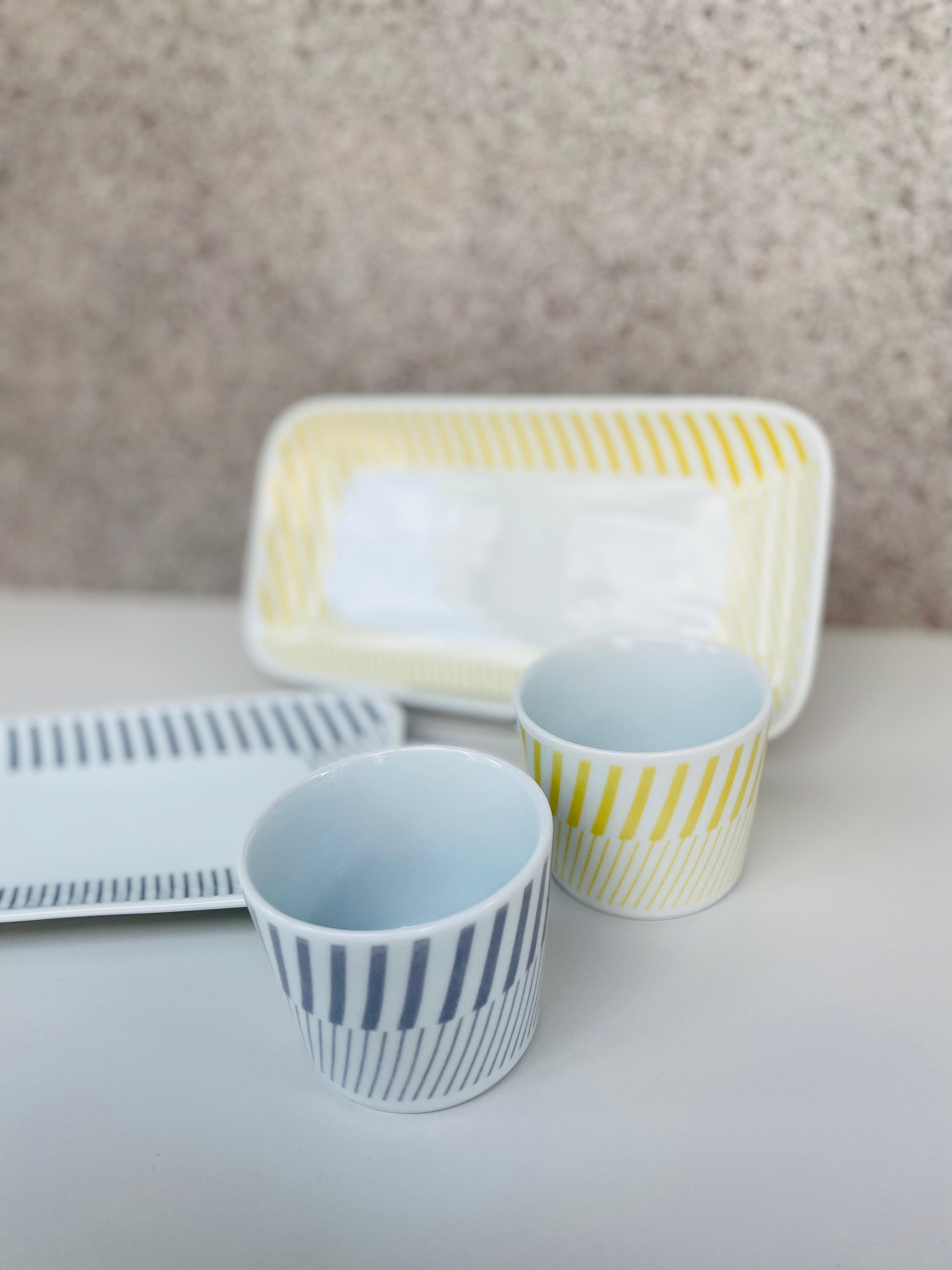 優しい色合いとパターンが爽やかな長角皿です。