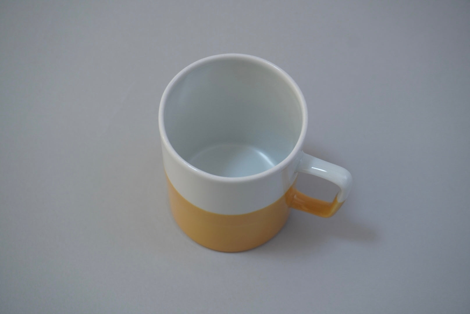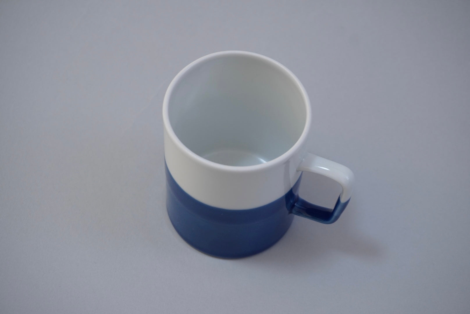 伝統的な技法で上下半分ずつ異なる釉薬を施したマグは、手仕事ならではの味わいが感じられる一品です。