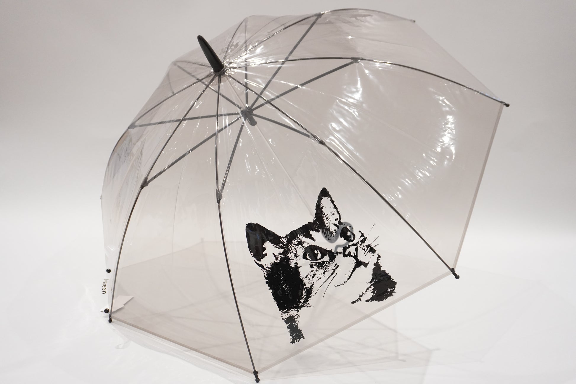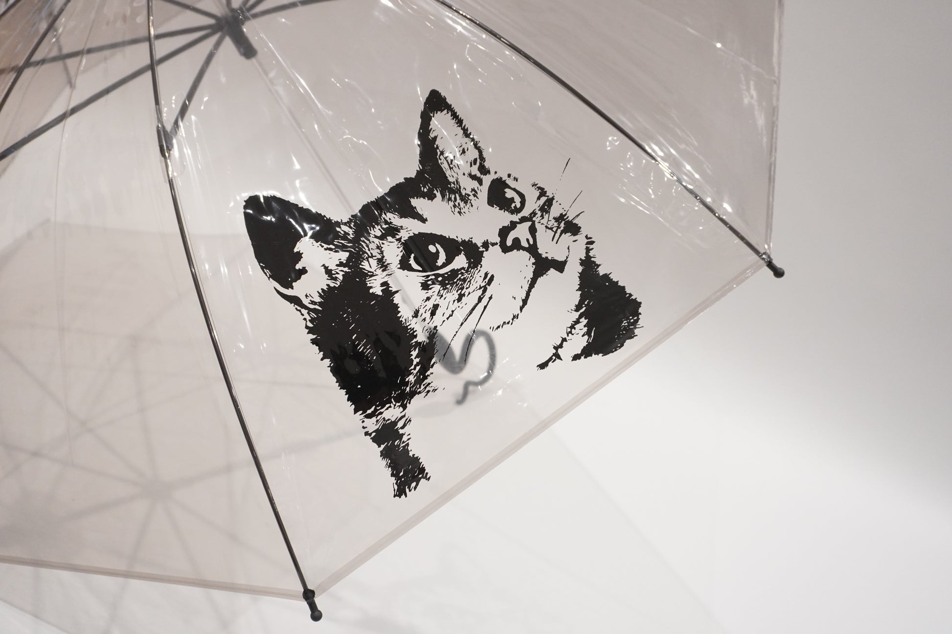 リアルなCATプリントがインパクト抜群、傘に伝う雨粒を眺めているようなデザインです。猫好きさんへのプレゼントにもおすすめです。